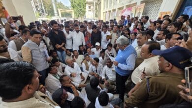 बारिश और आंधी से बर्बाद फसलों के मुआवजे की मांग, कांग्रेस ने किया कलेक्टर कार्यालय का घेराव