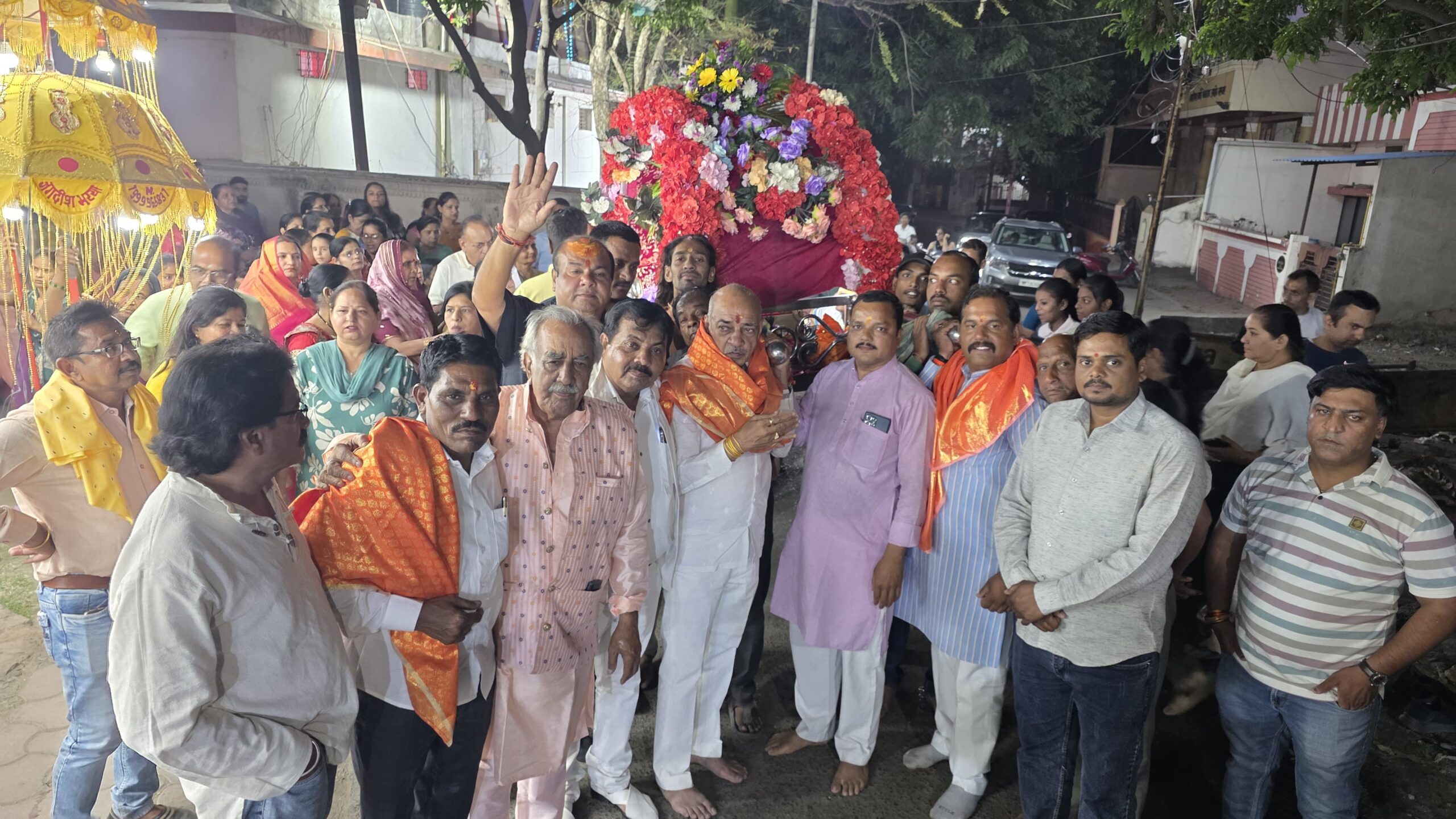 सिंधी कॉलोनी में भव्य आतिशबाजी के साथ हुआ स्वागत, मातृशक्ति ने किया उत्साहपूर्वक नृत्य, आज होगा विशाल भंडारा
