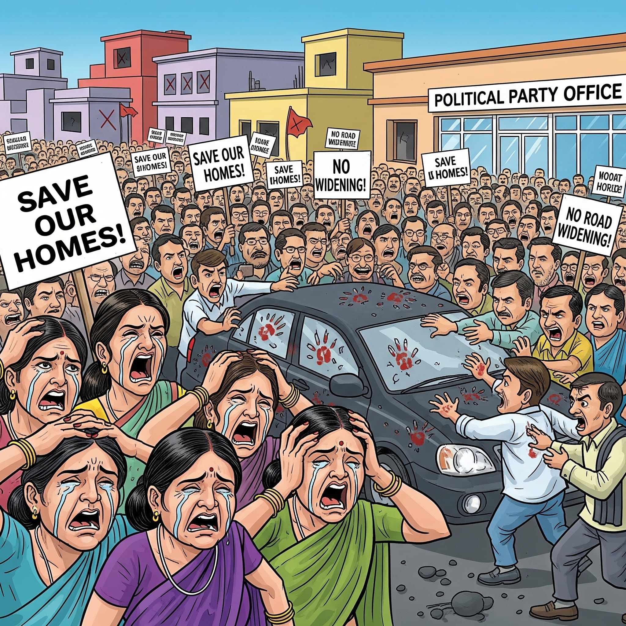 उज्जैन। शहर में पिपलीनाका से गढ़कालिका मंदिर होते हुए भैरवगढ़ तक प्रस्तावित सड़क चौड़ीकरण के विरोध में जनता सड़कों पर उतर आई है। गुरुवार को 400 से अधिक आक्रोशित रहवासियों ने विधायक अनिल जैन कालूहेड़ा की कार रोककर उनका और भाजपा कार्यालय का घेराव किया। अपनी पीड़ा सुनाने पहुंचे इन रहवासियों को भाजपा कार्यालय पर भाजपा नेताओं द्वारा धक्के दिए गए।