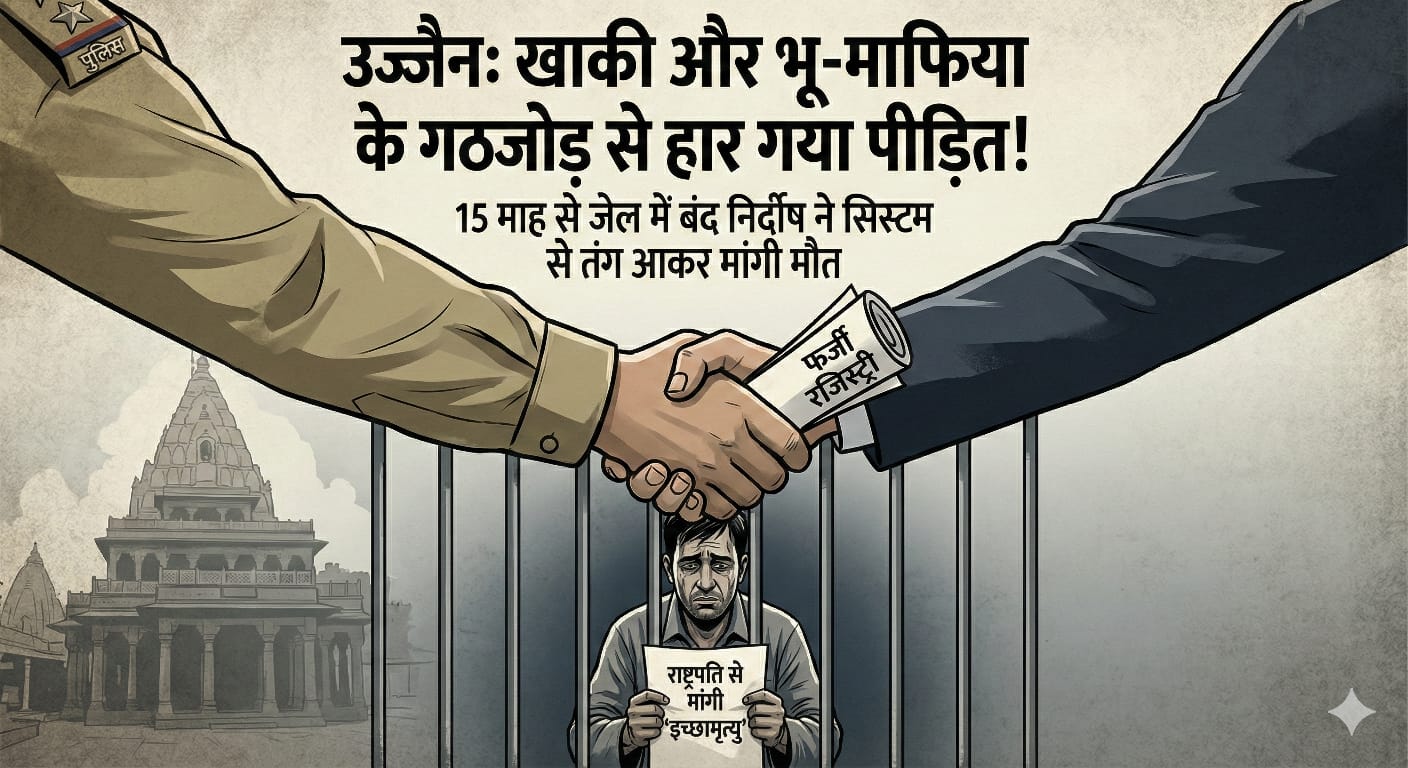 उज्जैन। महाकाल की नगरी उज्जैन में भू-माफिया और पुलिस के कथित गठजोड़ का एक सनसनीखेज मामला सामने आया है। न्याय की आस टूटती देख, पिछले 15 महीनों से जेल में बंद एक पीड़ित ने अब महामहिम राष्ट्रपति द्रौपदी मुर्मू को पत्र लिखकर ’इच्छामृत्यु’ की अनुमति मांगी है। मामला कोटा (राजस्थान) निवासी धनकिशोर उर्फ घनश्याम व्यास से जुड़ा है, जिसने उज्जैन पुलिस के अधिकारियों, उप-पंजीयक और भू-माफियाओं सहित कुल 14 लोगों पर गंभीर आरोप लगाए हैं।