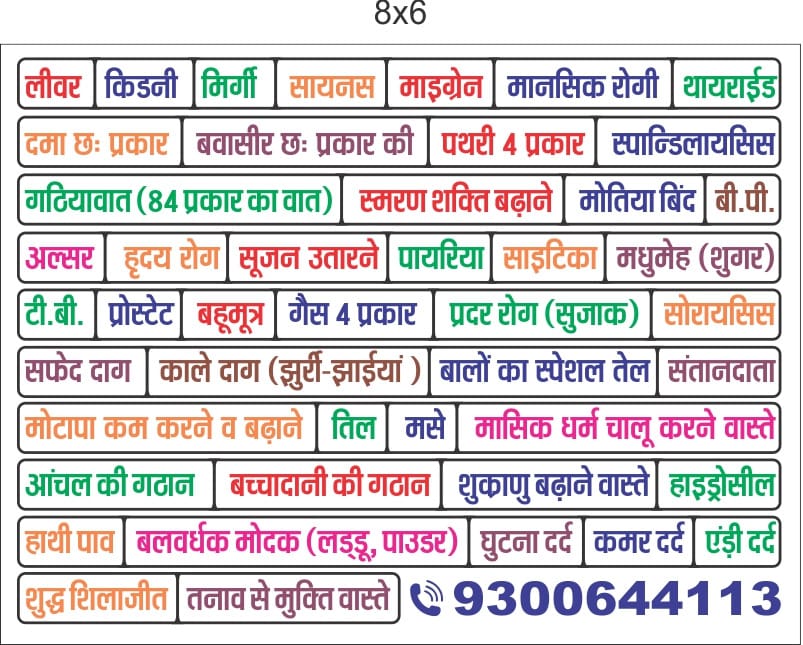 मां दुर्गा वन औषधि संजीवनी अनुसंधान के डायरेक्टर संतोष आनंद जायसवाल पिछले 25 वर्षों से बिना किसी जांच रिपोर्ट के केवल नाड़ी देखकर रोगों का निदान कर रहे हैं। शिविर में गठियावात, बवासीर, पथरी, थायराइड, माइग्रेन, साइटिका, लकवा, सोरायसिस, सफेद दाग, और स्त्री-पुरुषों के गुप्त रोगों का उपचार किया जा रहा है।