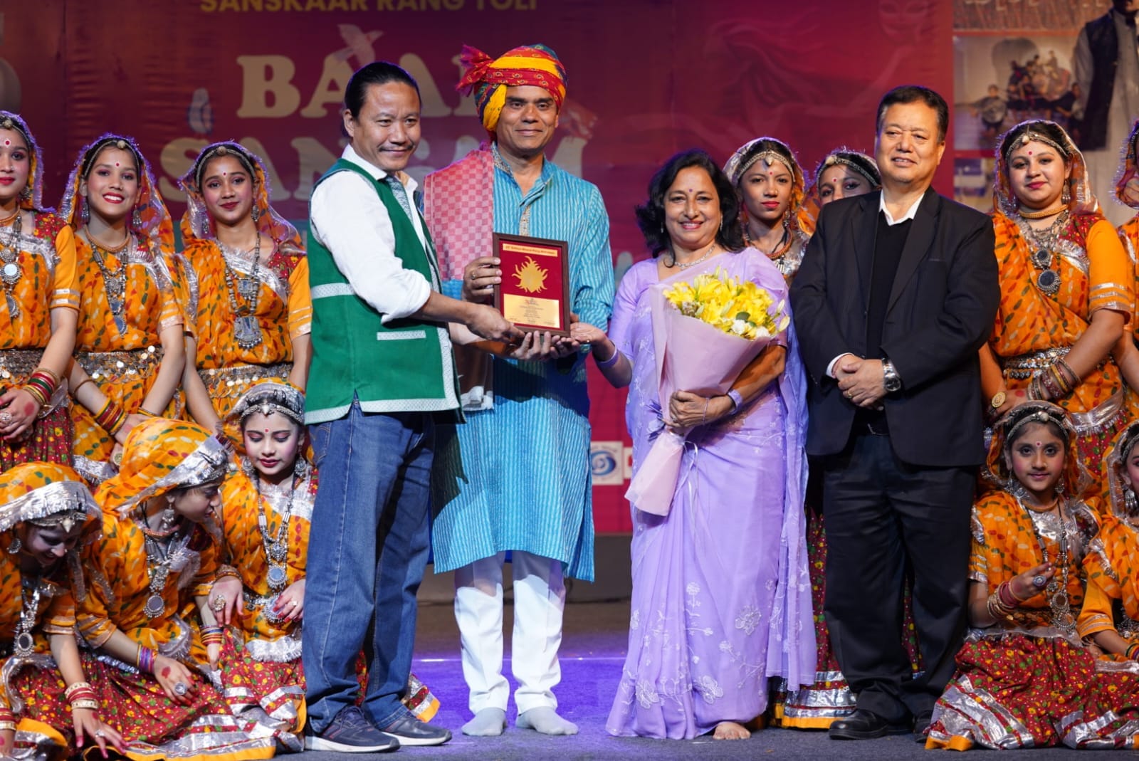 महोत्सव के समापन समारोह में राष्ट्रीय नाट्य विद्यालय के प्रमुख श्री रिकेन नगोमले और अन्य गणमान्य अतिथियों ने दल के निर्देशन और नेतृत्व के लिए कुमार किशन और डॉ. पल्लवी किशन का विशेष सम्मान किया।