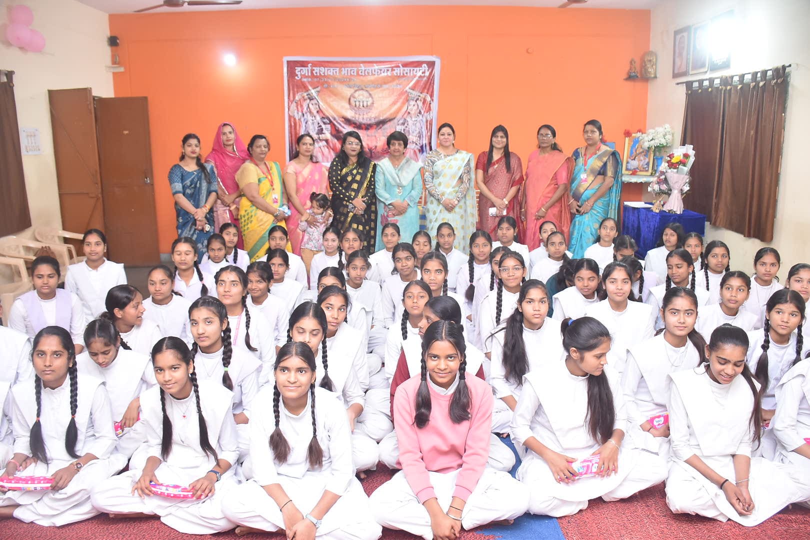 दुर्गा सशक्त भाव वेलफेयर सोसाइटी ने छात्राओं को बांटे सेनेटरी पैड, सिखाया मंत्रोच्चारण से दिमाग संतुलित करना