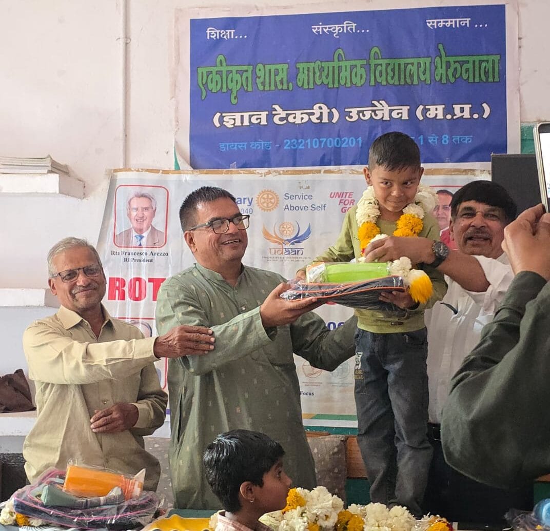 रोटरी क्लब उज्जैन ने शासकीय स्कूल में बांटे बैग और स्टेशनरी