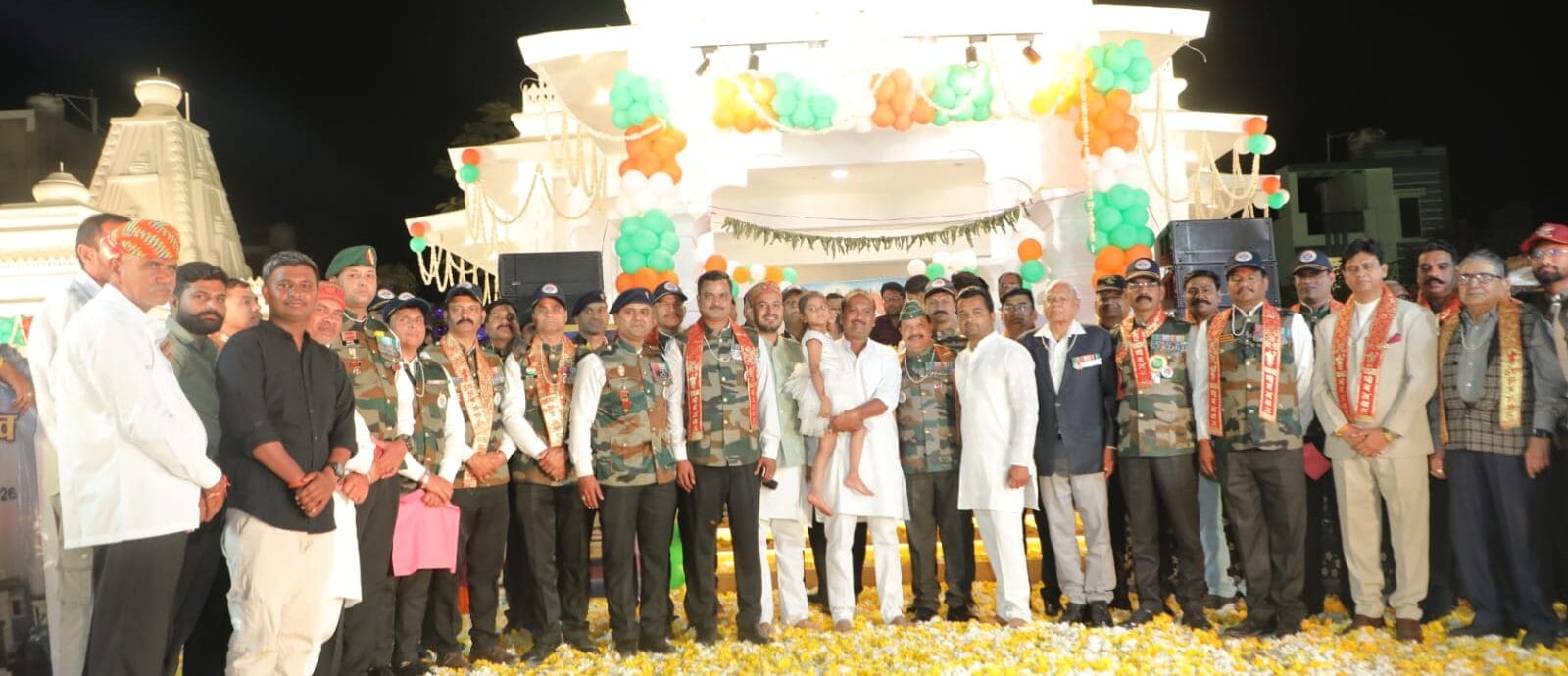 कार्यक्रम में बच्चों ने गणेश वंदना, देशभक्ति नृत्य, लेजर शो और तलवारबाजी का शानदार प्रदर्शन किया। वीर योद्धा नीलेश मनोहर ने “मेरे देश की धरती…”, डॉ. पिंकेश डफरिया व रविंद्रपाल सिंह जादौन ने “संदेशे आते हैं…” गाकर सभी को भावविभोर कर दिया। वहीं, सुभाष दुबेजी के गीत “ये देश है वीर जवानों का…” पर उपस्थित जनसमूह और पूर्व सैनिक देशभक्ति के जोश में झूम उठे। पूरा क्षेत्र ‘भारत माता की जय’ और ‘वंदेमातरम’ के जयकारों से गूंज उठा।