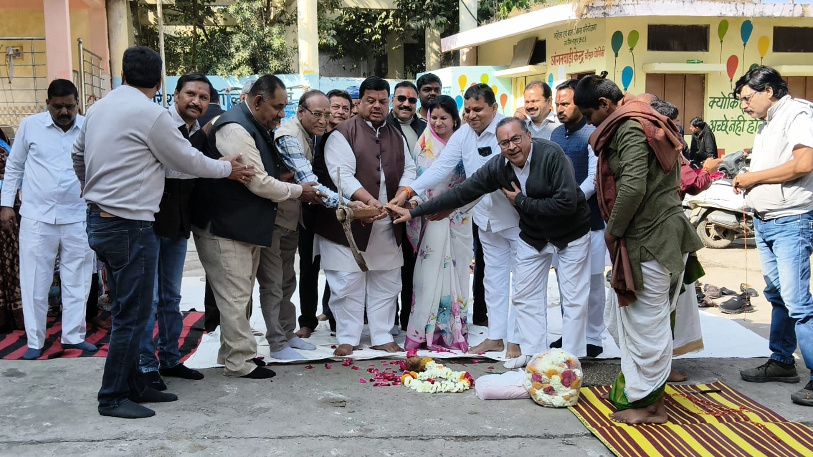 कार्यक्रम में वार्ड के निवासी, कांग्रेस के वरिष्ठ नेता एवं बड़ी संख्या में स्थानीय नागरिक उपस्थित रहे। पार्षद सपना सांखला ने बताया कि लंबे समय से वार्ड के रहवासियों एवं गुरुद्वारे आने वाले श्रद्धालुओं को खराब सड़क के कारण भारी परेशानियों का सामना करना पड़ रहा था। निरीक्षण के दौरान रहवासियों से सड़क निर्माण की मांग सामने आई। क्षेत्र की सड़क पर जगह-जगह गड्ढे हो गए थे, जिससे आवागमन में दिक्कत हो रही थी। साथ ही एक फरवरी को संत रविदास जी महाराज की जयंती के अवसर पर बड़ी संख्या में श्रद्धालुओं के आगमन को देखते हुए यह निर्णय लिया गया कि जयंती से पूर्व ही सड़क निर्माण कार्य पूरा कराया जाए, ताकि श्रद्धालुओं को किसी प्रकार की असुविधा न हो। इस समस्या के समाधान हेतु 30 लाख रुपये की लागत से सड़क निर्माण कार्य का भूमि पूजन किया गया है, जिससे वार्डवासियों एवं श्रद्धालुओं को बड़ी राहत मिलेगी। कार्यक्रम को संबोधित करते हुए शहर कांग्रेस अध्यक्ष मुकेश भाटी ने कहा कि जनता द्वारा चुने गए पार्षदों की यह जिम्मेदारी है कि वे अपने वार्ड के विकास के साथ-साथ श्रद्धालुओं की सुविधाओं का भी विशेष ध्यान रखें। कांग्रेस के पार्षद लगातार अपने-अपने वार्डों में विकास कार्य कर रहे हैं। कार्यक्रम के दौरान वार्डवासियों ने पार्षद सपना सांखला का मिठाई खिलाकर आभार व्यक्त किया और आशा जताई कि भविष्य में भी इसी प्रकार वार्ड में विकास कार्य होते रहेंगे। कार्यक्रम के अंत में पार्षद द्वारा समाजसेवियों एवं अतिथियों का फूल-मालाओं से सम्मान किया गया। इस अवसर पर नगर निगम एमआईसी सदस्य प्रकाश शर्मा, नेता प्रतिपक्ष रवि राय, पूर्व ब्लॉक अध्यक्ष अभय मेहता, सुशील गोड़, वरिष्ठ नेता सलीम खान, गब्बर कुवाल, मनीष व्यास, जयशंकर मेहता, वीरेंद्र मंडलोई, ललित बम, अभय माथुर, कैलाश गौरी, शेखर पेट्रोल, नरेंद्र चौहान, ललित मीना, ब्लॉक अध्यक्ष अभिषेक लाला, पार्षद इमरान खान, पार्षद परमानंद मानवी, ललित मीणा, मनीष व्यास, शेखर पथरोड सहित बड़ी संख्या में पदाधिकारी व कार्यकर्ता उपस्थित रहे।