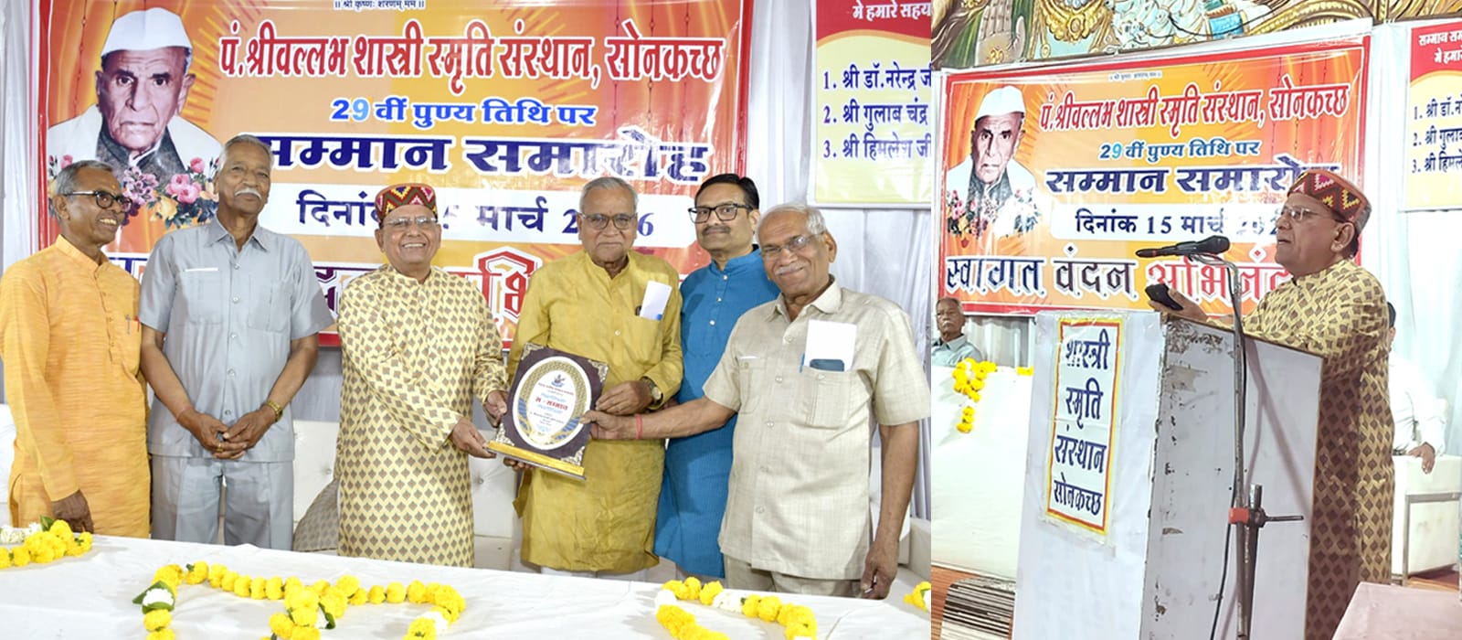 श्री वल्लभ शास्त्री स्मृति संस्थान द्वारा जिला स्तरीय सम्मान समारोह ‘2026 में आचार्य शैलेन्द्र पाराशर सम्मानित