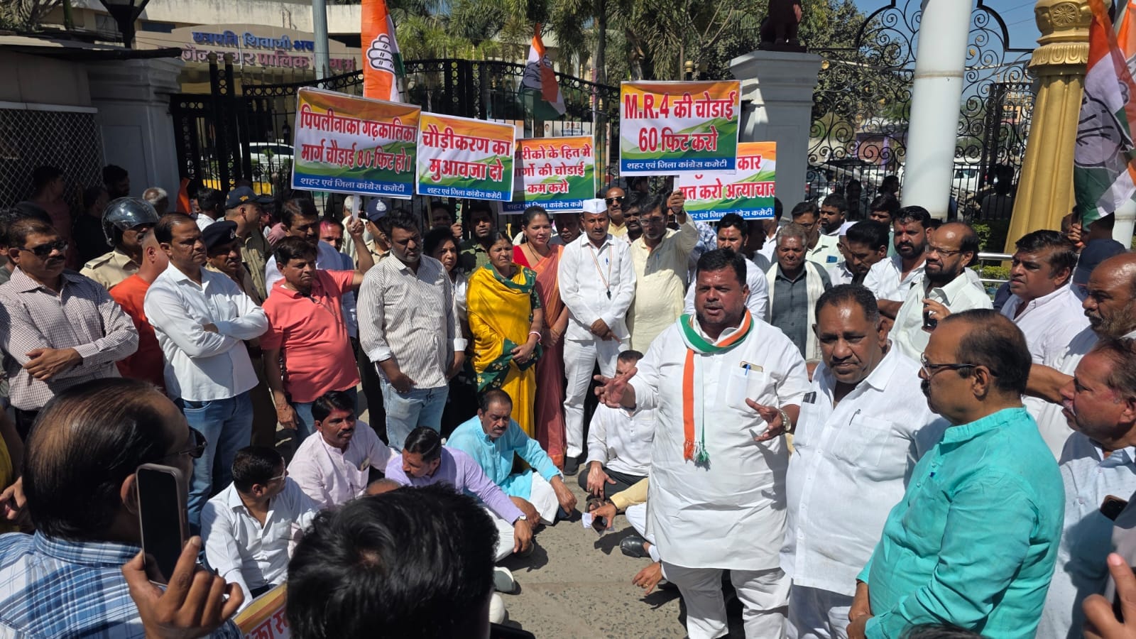 सड़क चौड़ीकरण और मुआवजे को लेकर कांग्रेस का हल्लाबोल, नगर निगम का किया घेराव