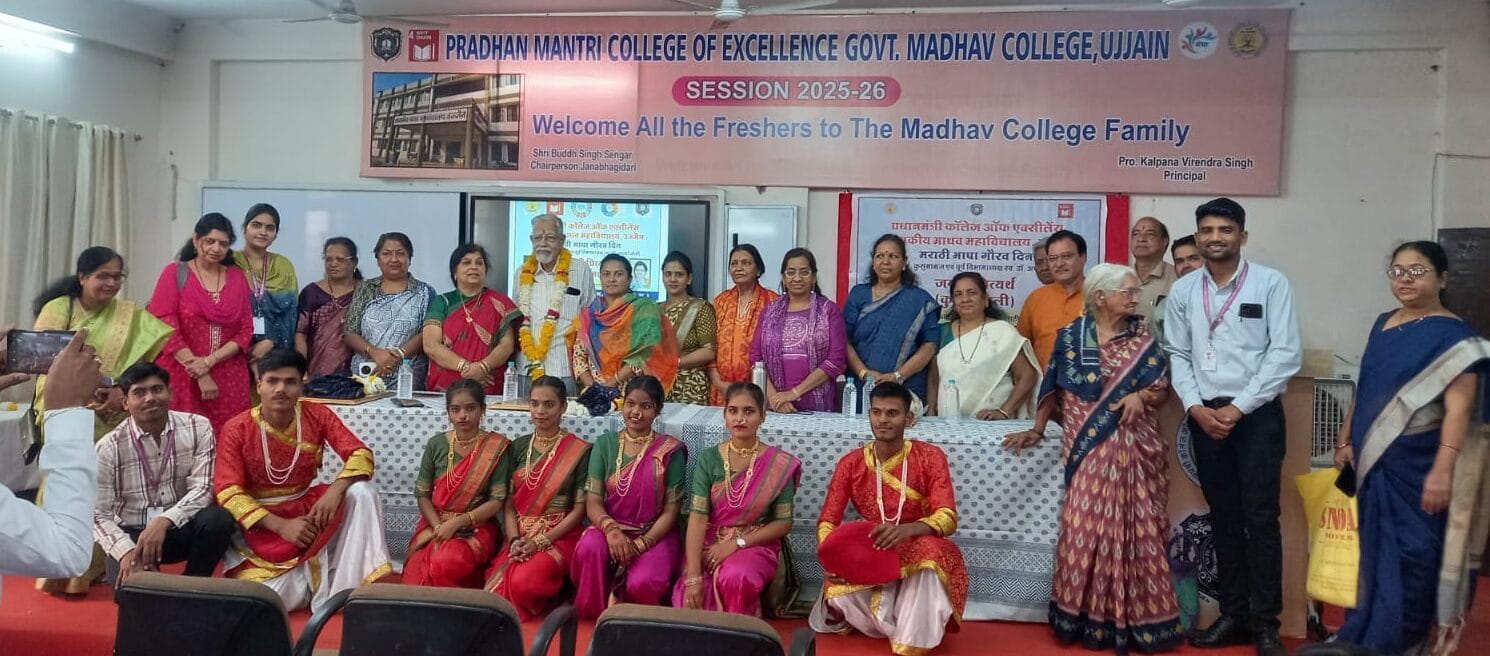 उज्जैन। प्रधानमंत्री स्कूल ऑफ एक्सीलेंस, शासकीय माधव महाविद्यालय के मराठी विभाग में ’मराठी राजभाषा गौरव दिन’ मनाया गया। इस अवसर पर विपुल साहित्य रचने वाले प्रसिद्ध साहित्यकार वि. वा. शिरवाडकर (कुसुमाग्रज) और मराठी विभाग की पूर्व विभागाध्यक्षा स्व. डॉ. अपर्णा जोशी की स्मृति में कार्यक्रम आयोजित किया गया। इसमें विभाग के पूर्व छात्र-छात्राओं ने कुसुमाग्रज की कविताओं का पाठ कर उन्हें आदरांजलि दी तथा डॉ. अपर्णा जोशी से जुड़े संस्मरण सुनाकर व कविताओं का वाचन कर उन्हें भी श्रद्धांजलि अर्पित की।