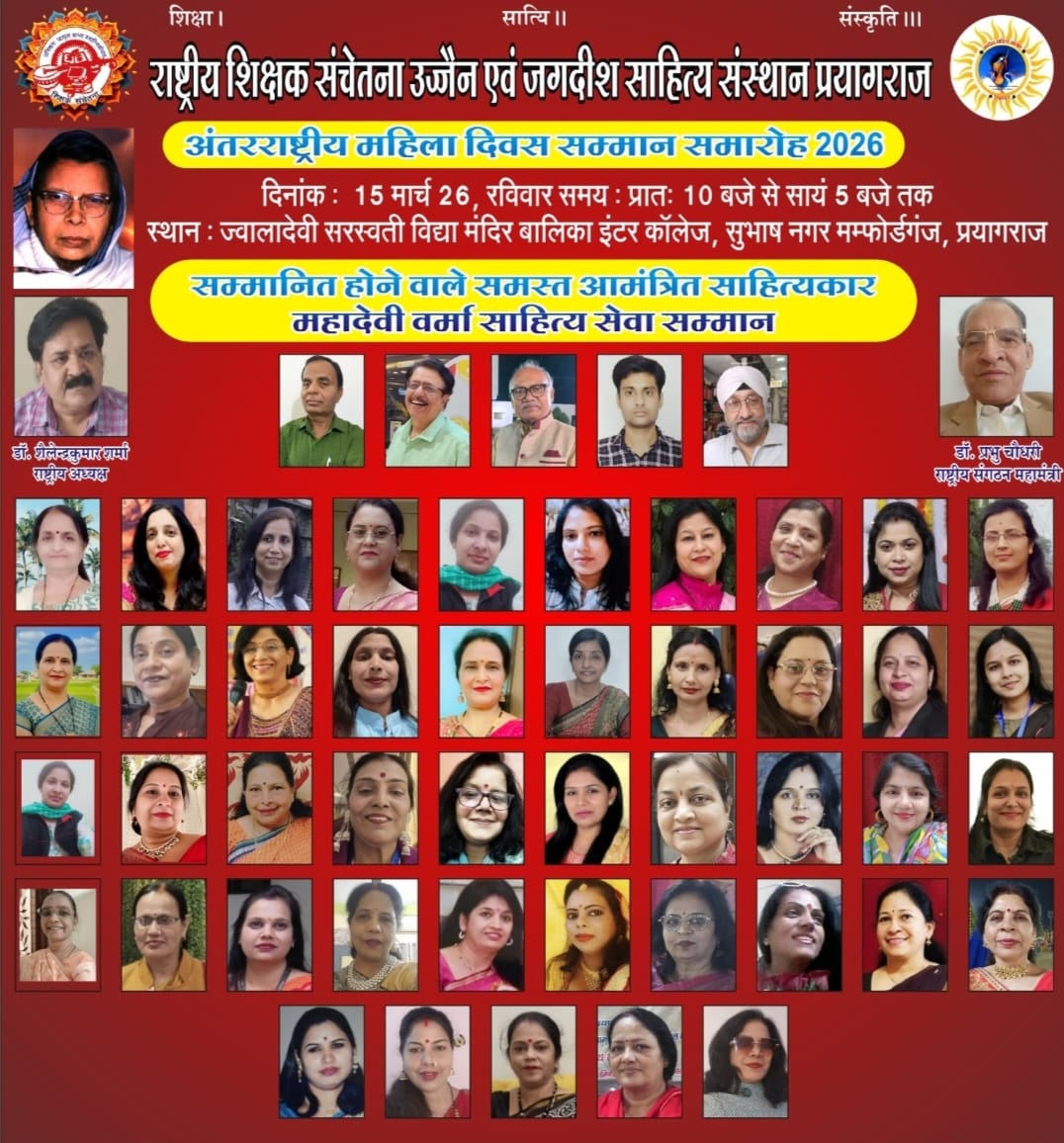 इस गरिमामय समारोह को सफल बनाने की अपील आयोजन समिति की राष्ट्रीय महासचिव डॉ. शहेनाज शेख, डॉ. दिव्या पाण्डे, उत्तर प्रदेश महासचिव सुश्री पल्लवी द्विवेदी, सचिव डॉ. उपासना पाण्डे, अनुरोध त्रिपाठी, इंदू दुबे, इंजी. हरिप्रकाश गुप्ता, अंजू जैन, रंजना पांचाल, डॉ. रचना पाण्डे, मंजू लंगोटे, डॉ. अन्नपूर्णा मालवीय, डॉ. दक्षा जोशी, अनुराधा उपाध्याय, डॉ. प्रेरणा उबाळे, सूरज कांत, शीला चंदन, आभा दुबे, डॉ. अरूणा सराफ, संगीता केसवानी, माया मेहता, ज्योति कुशवाह, पुष्पा गरोठिया और तृप्ति शाह आदि ने की है।
